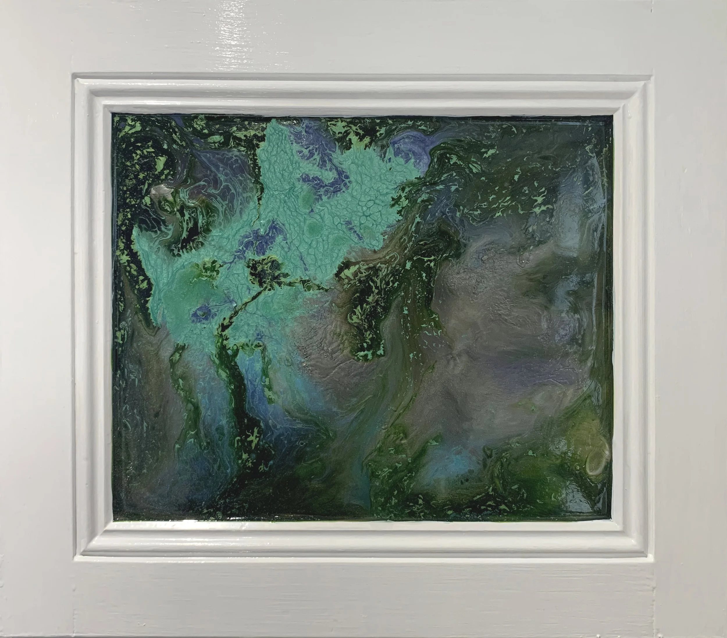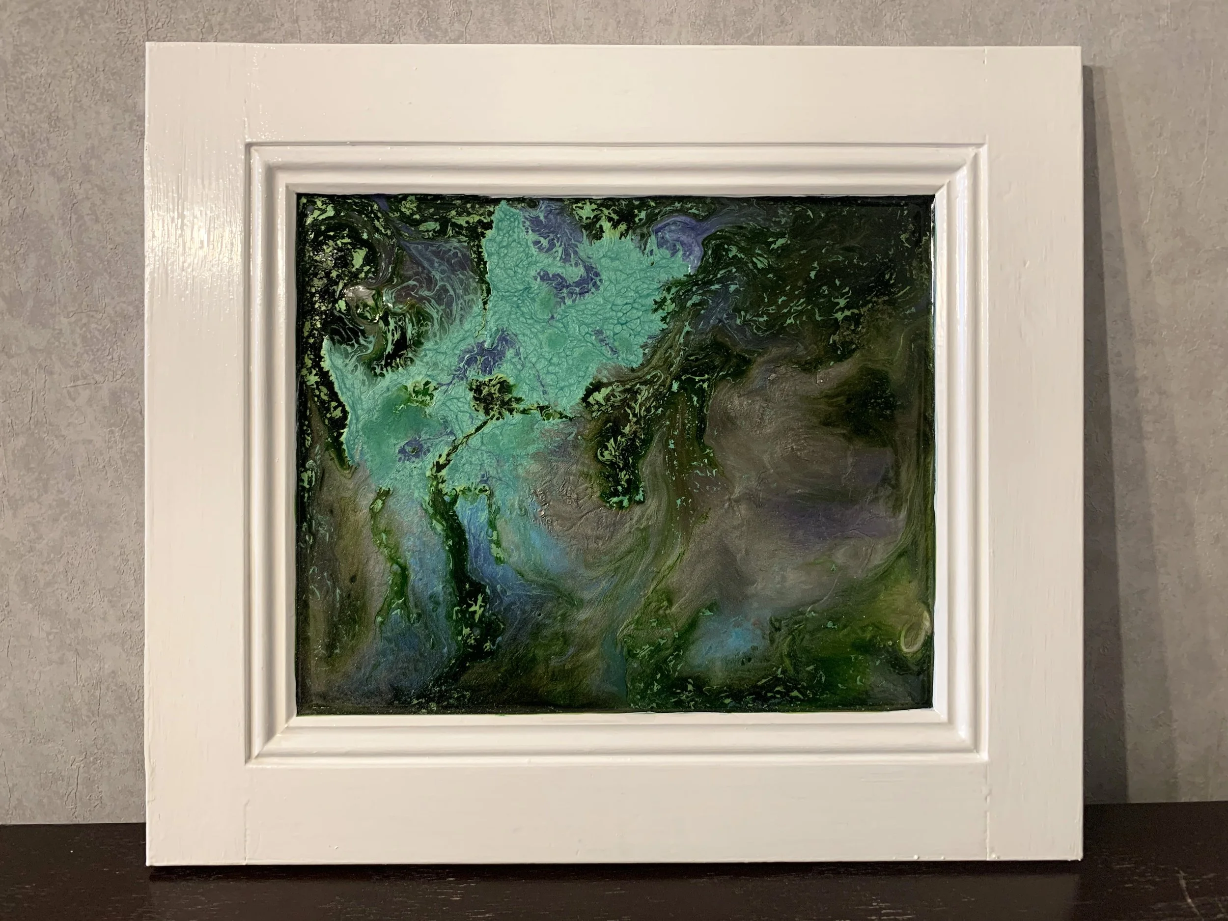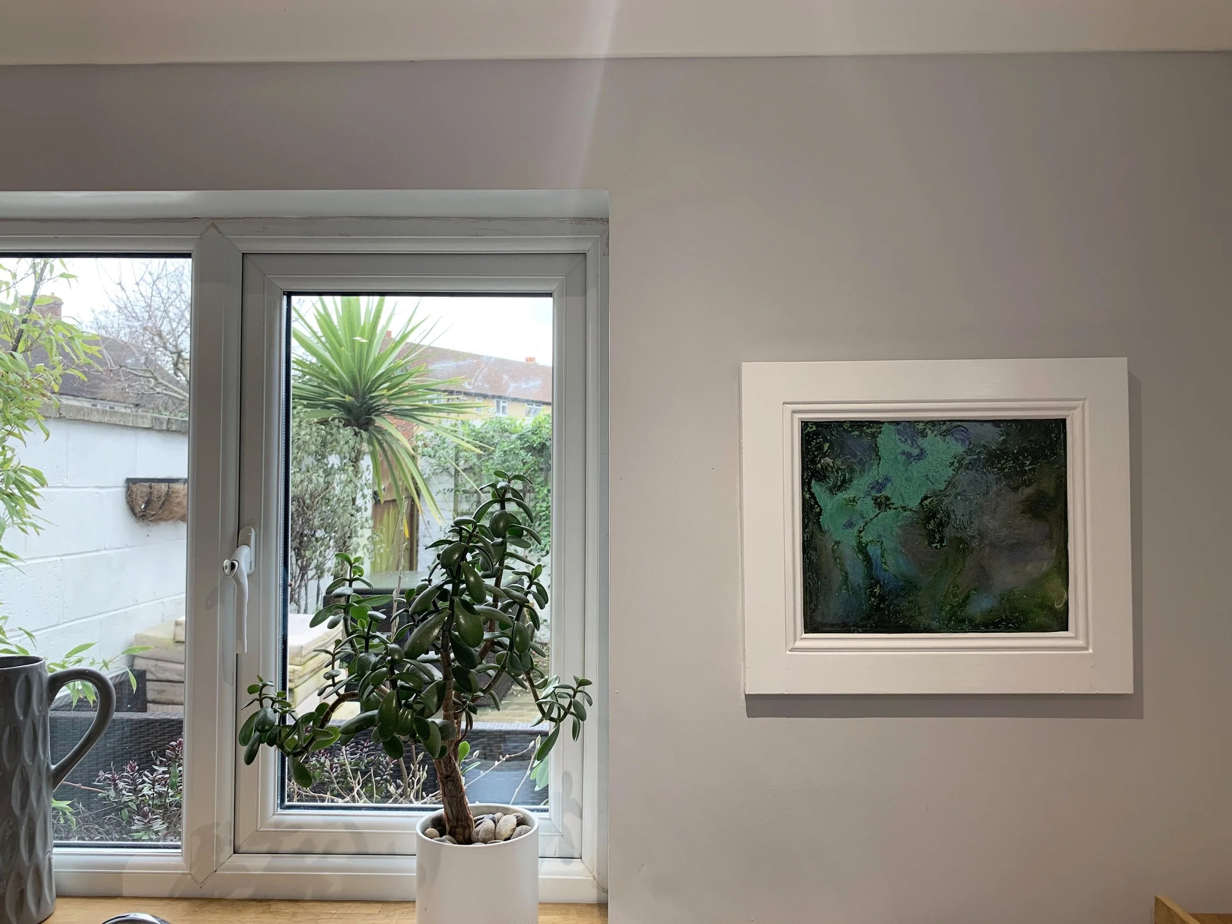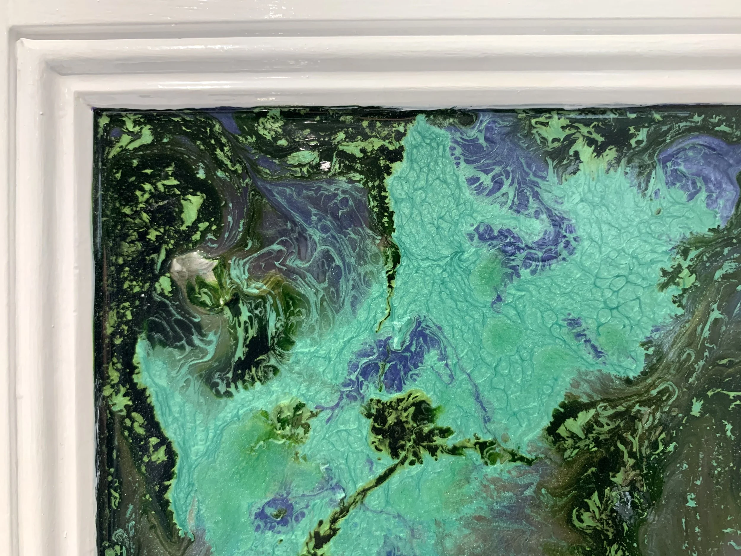 The door itself has been filled and glossed white to resemble a frame, and the inner panel is filled with poured paint.