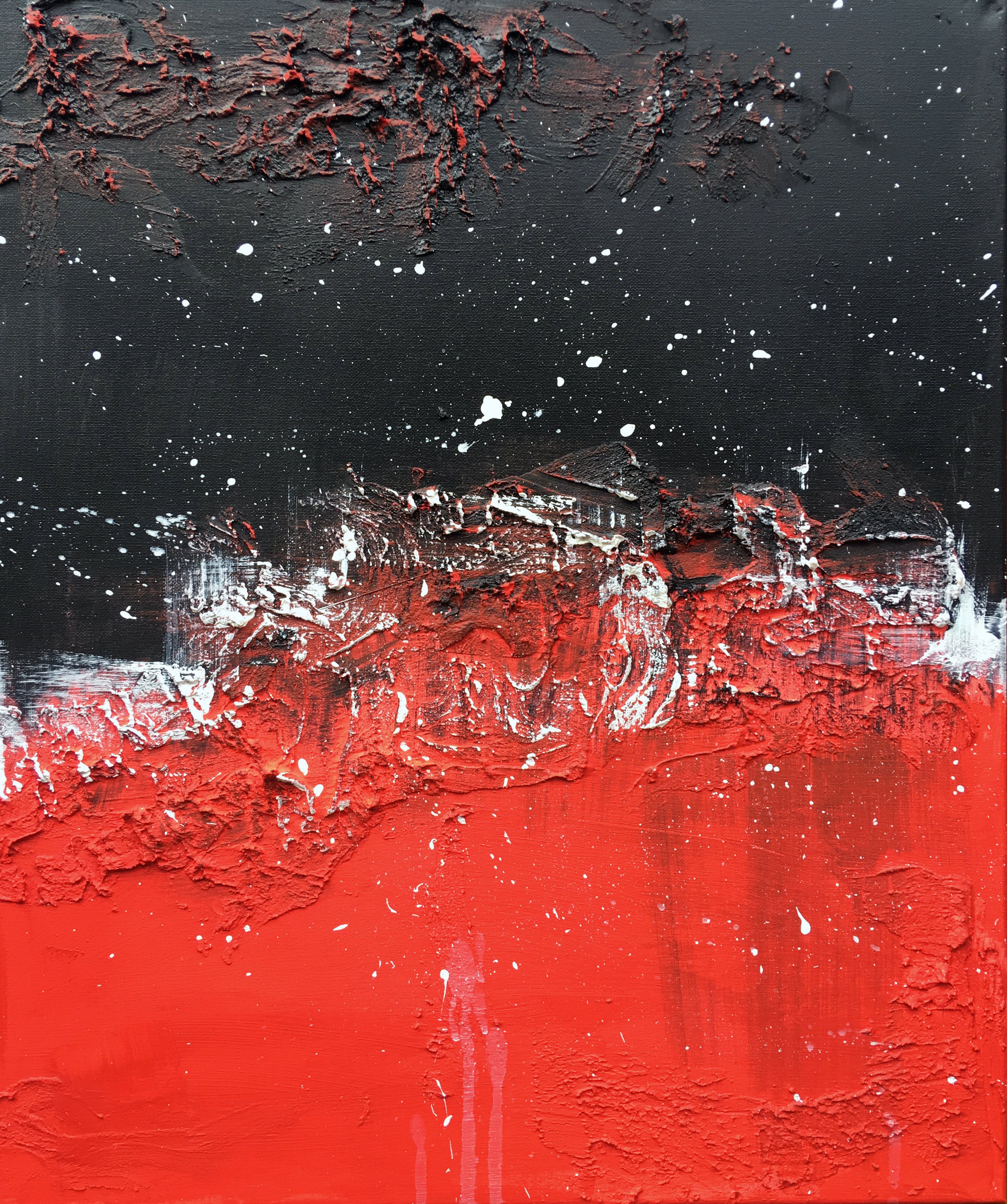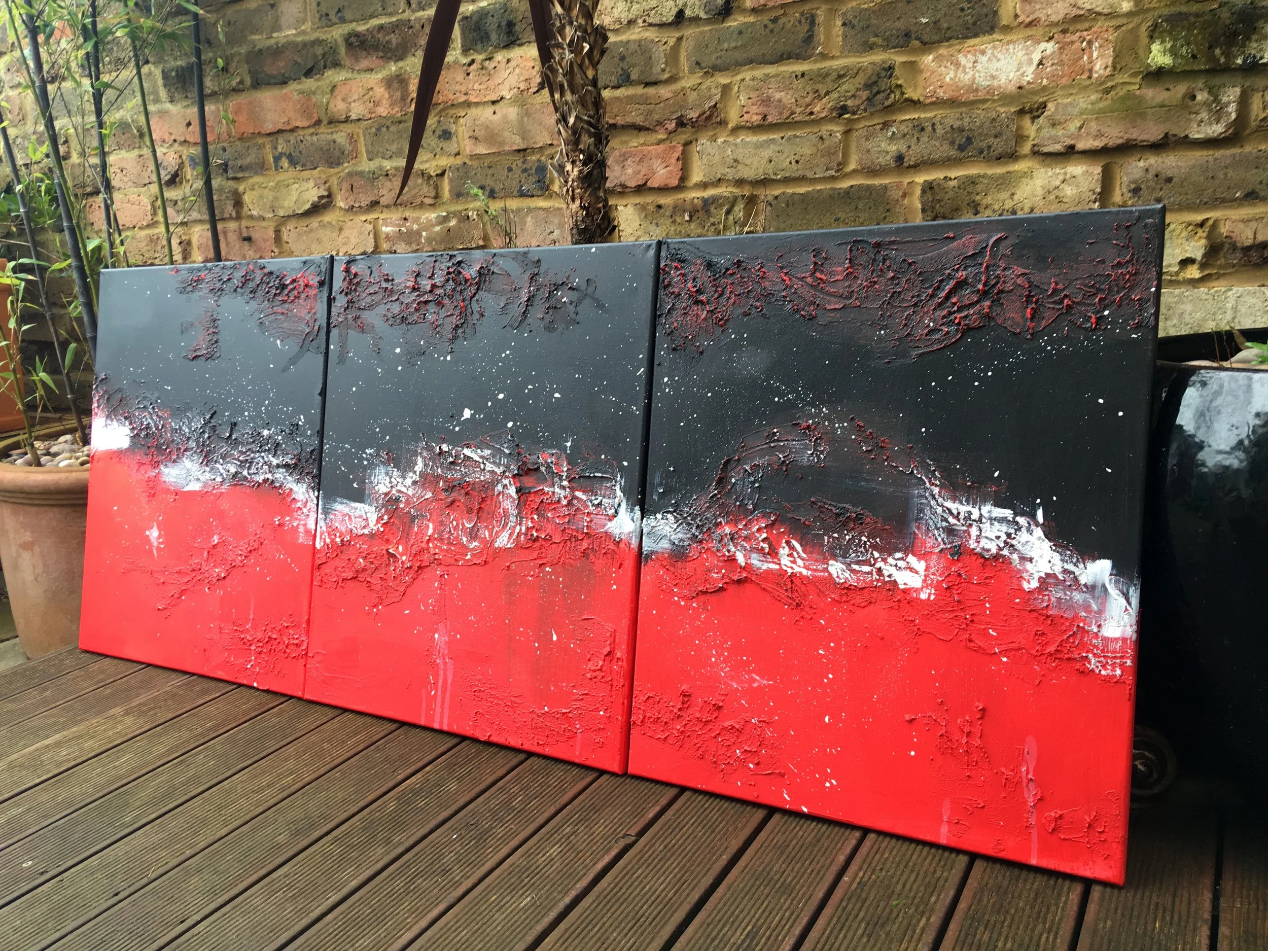 I was given red, white and black as the brief, along with the measurements of the 3 canvases to be hung beside each other.