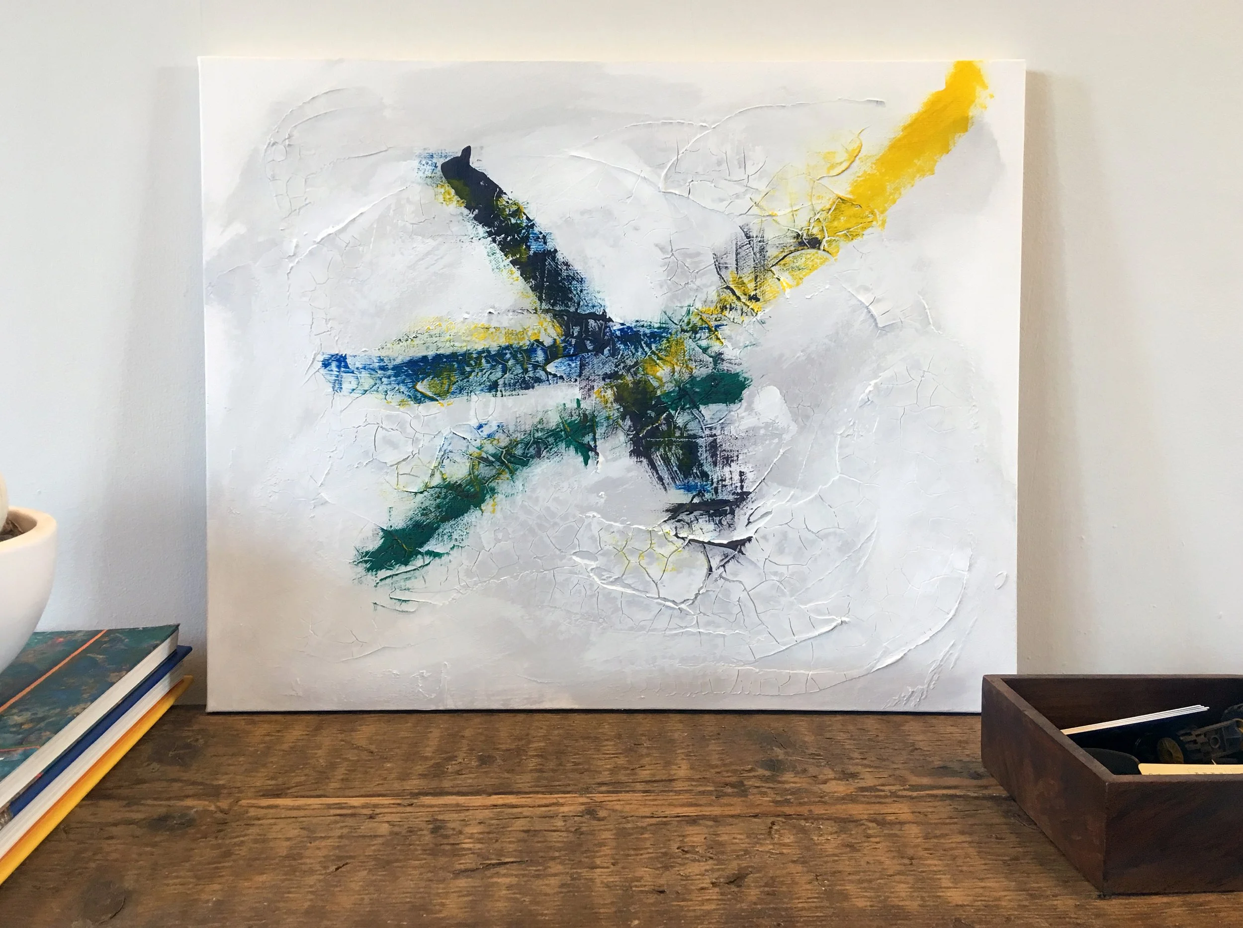 This painting incorporates the modern, contemporary and abstract styles, and is simplistic yet striking.
