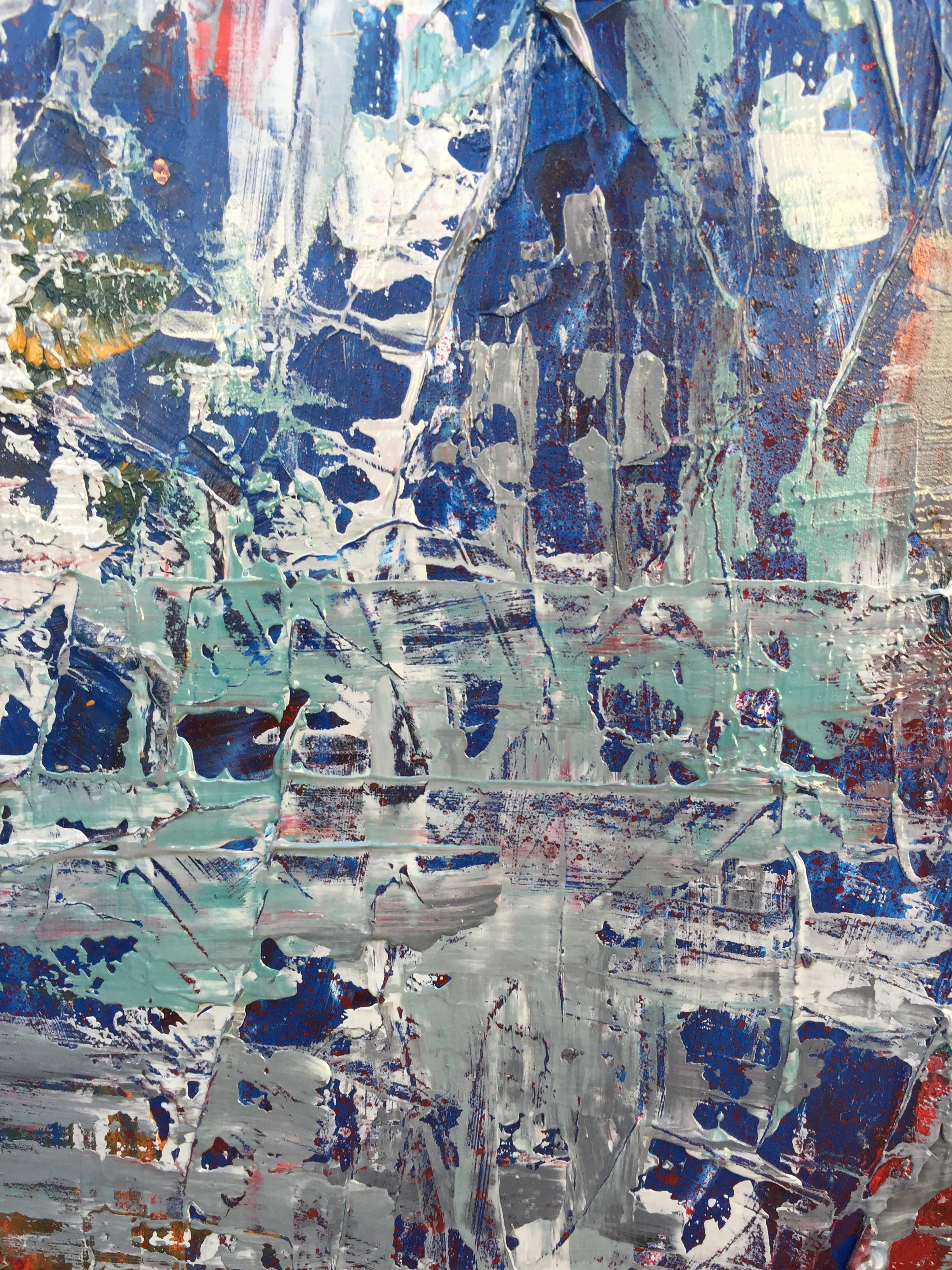 Muted blue rust is a heavily layered abstract painting that is inspired b photographs I have taken of rusting metal and other high textured objects.