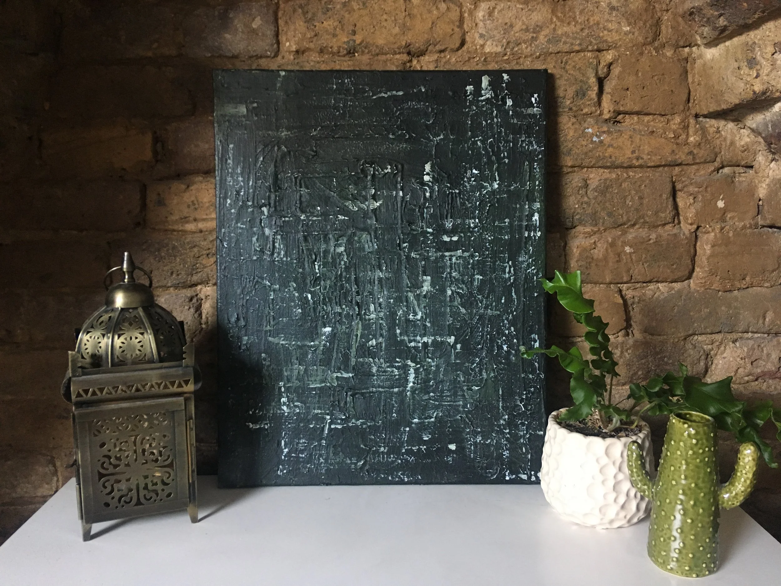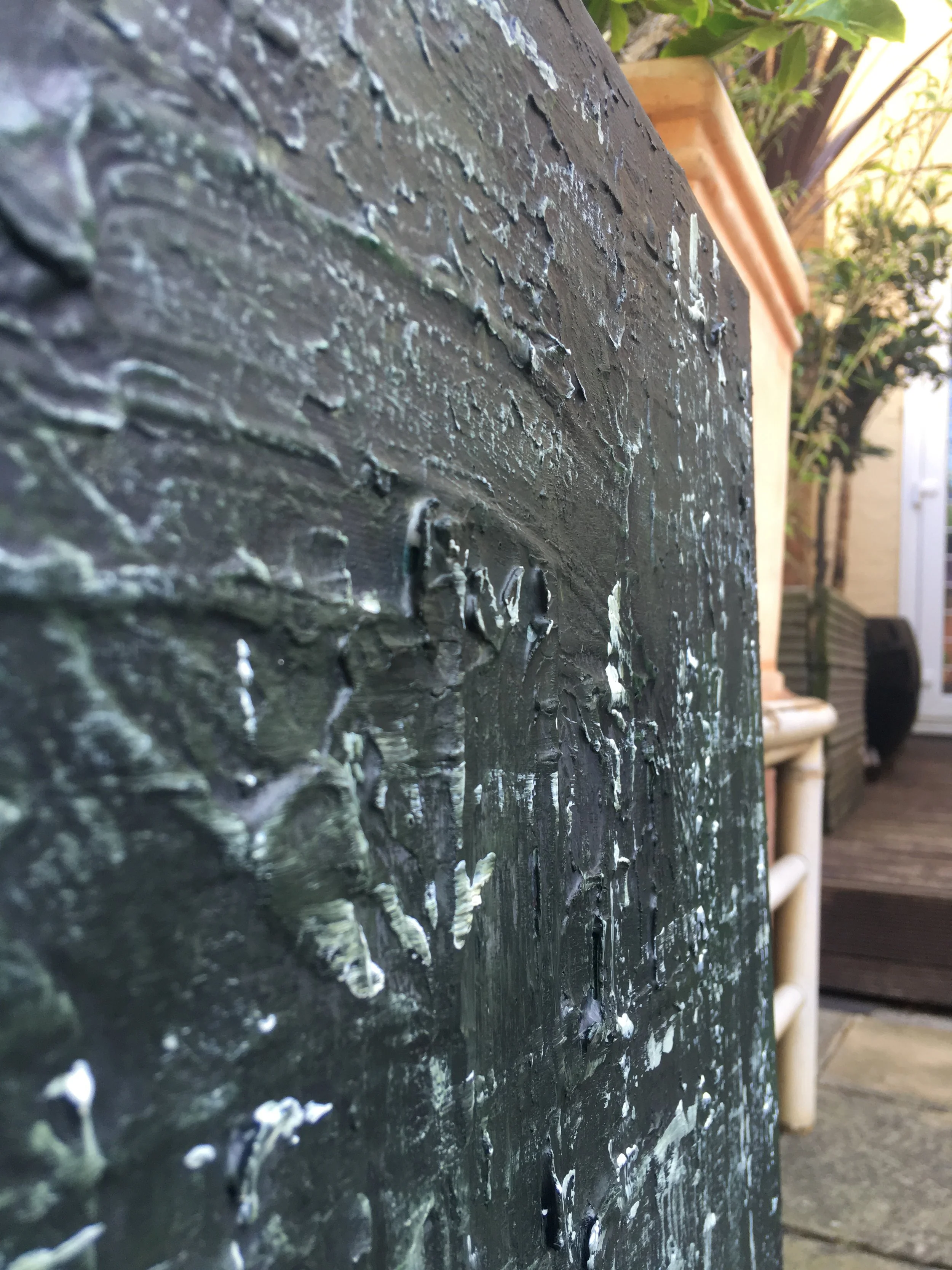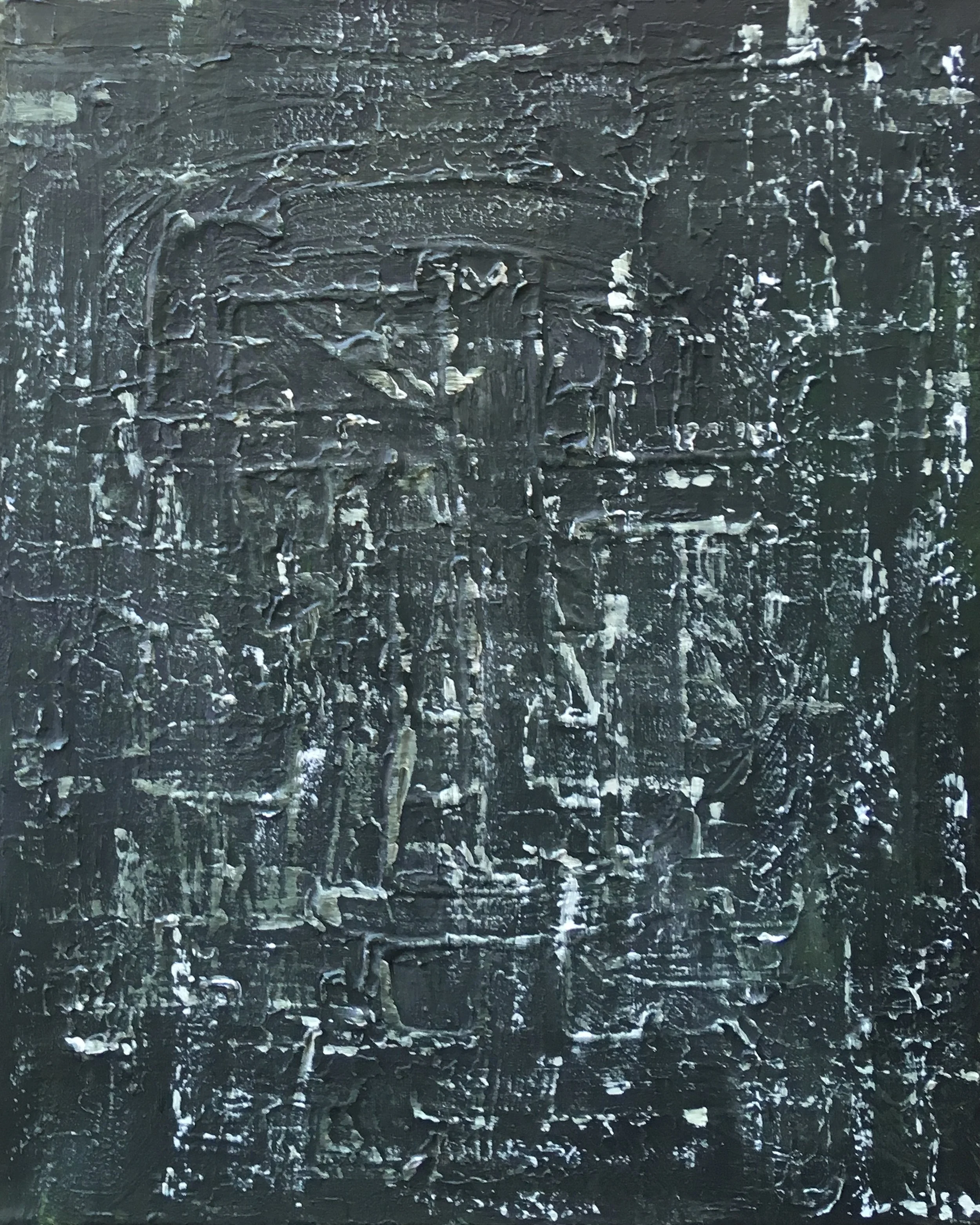 Rot is a dark textured painting using acrylic paints and plaster on canvas.