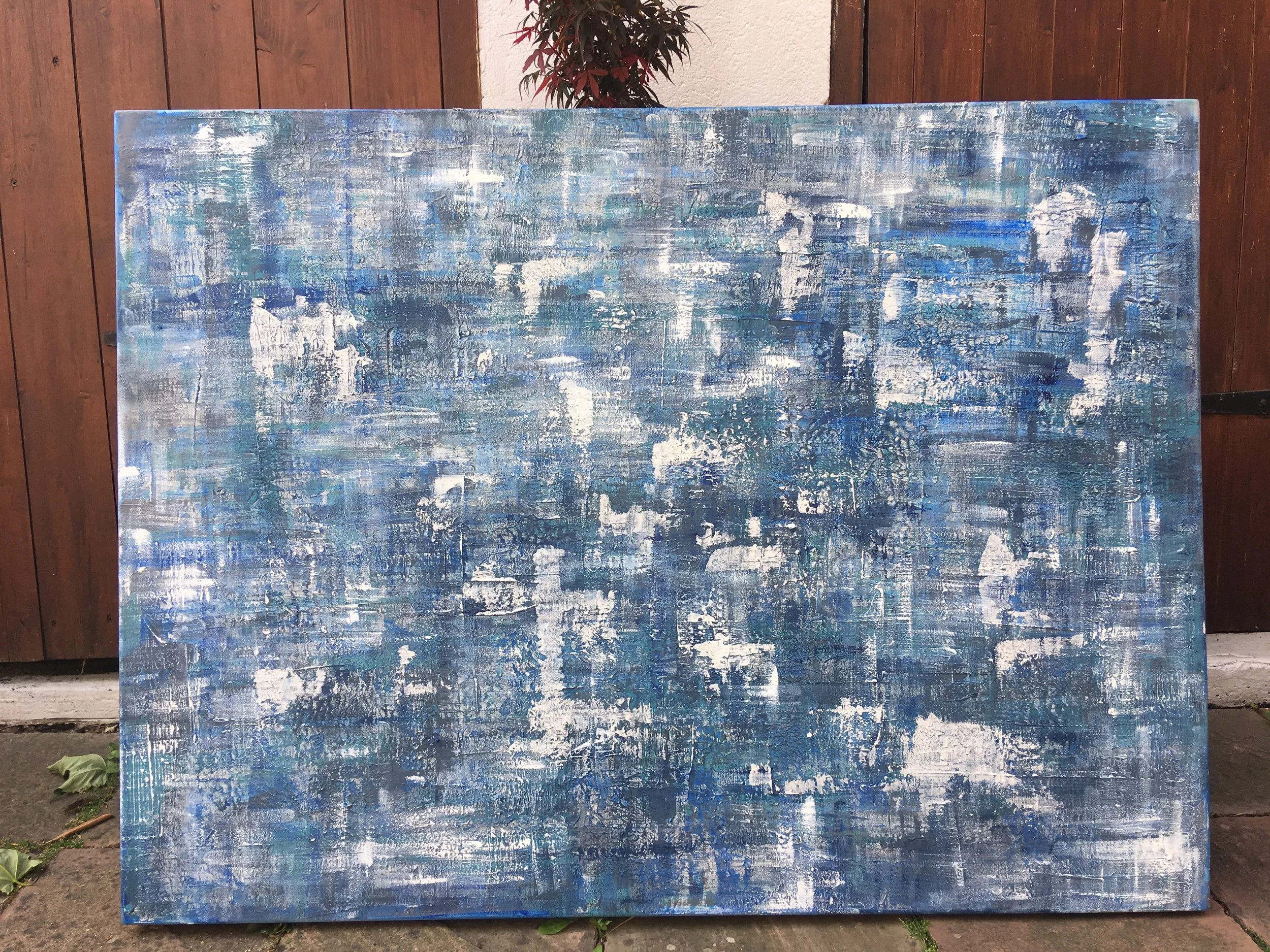 It was made for a friends new home, the colours chosen match his rug and blue and grey ombre feature wall.