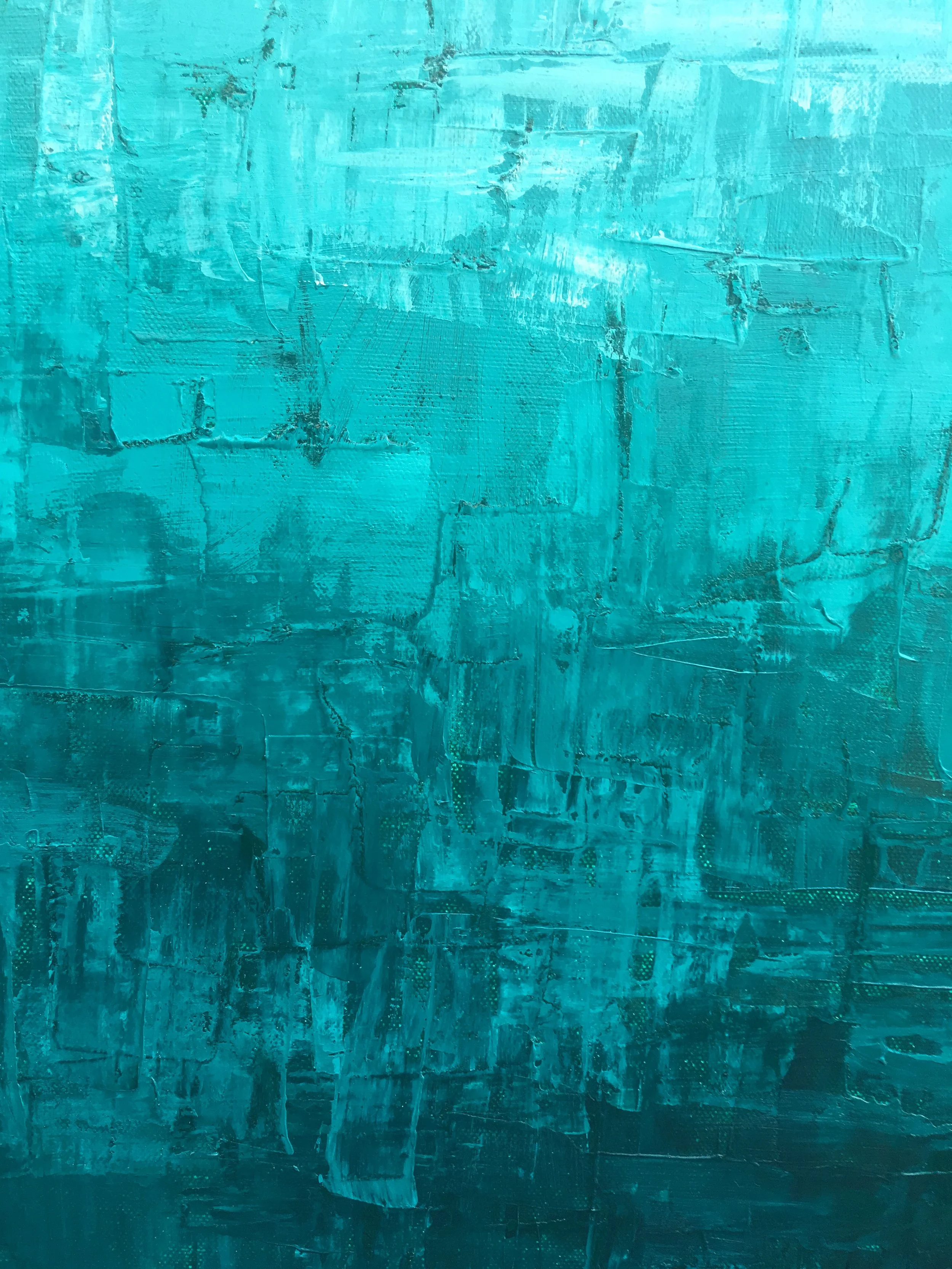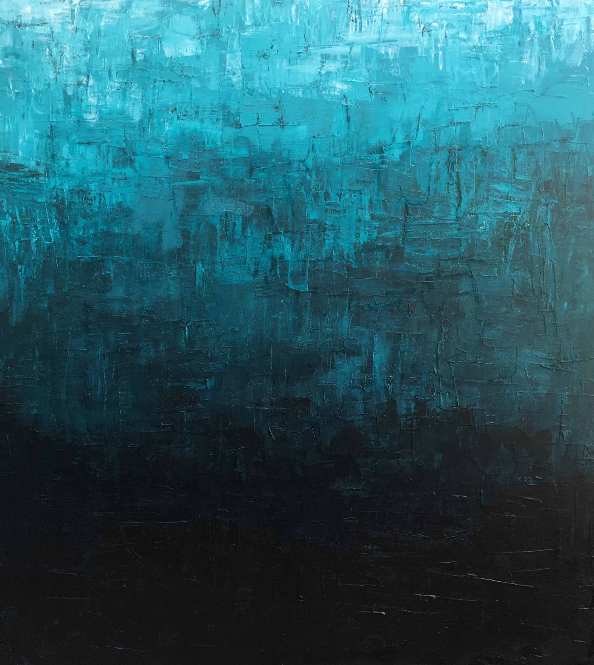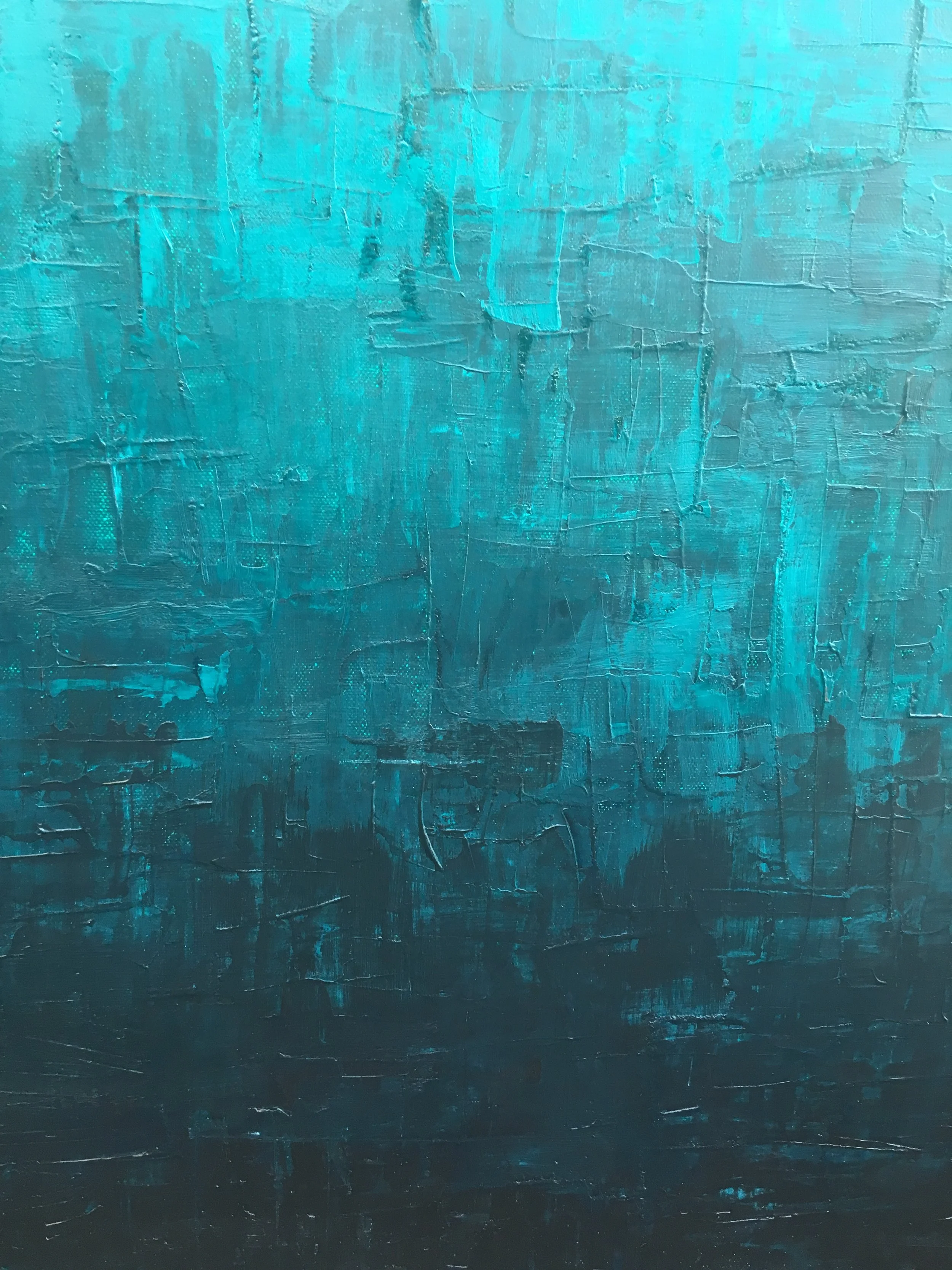 Turquoise haze was one of 4 paintings I was commissioned to paint for a friend. This version uses lighter blues that melt into the dark, creating an overall lighter composition.