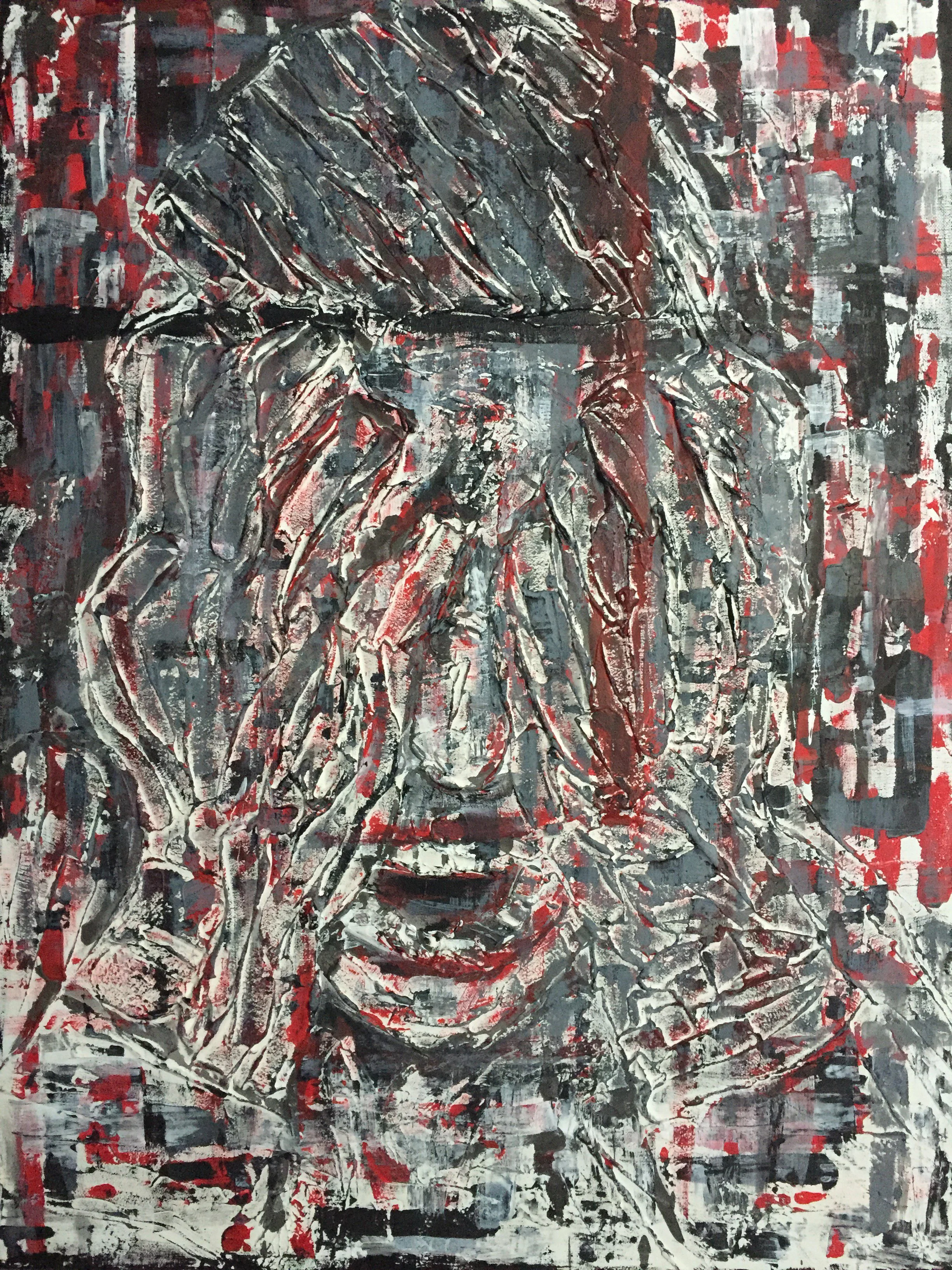 ‘What have I done now?’ is a painting that reflects feelings of anger/desperation/stress/sadness using plaster, acrylic paint and ink.