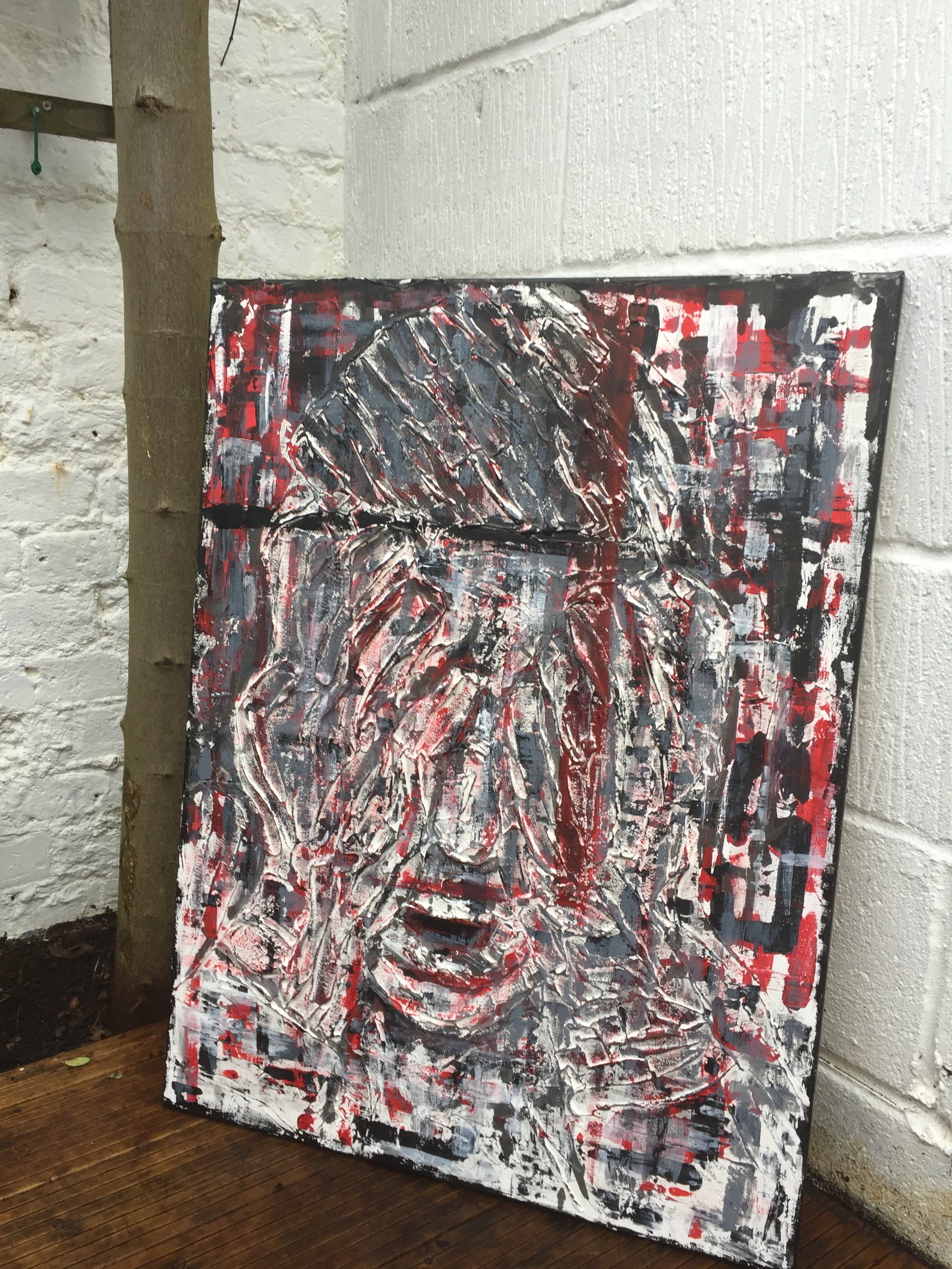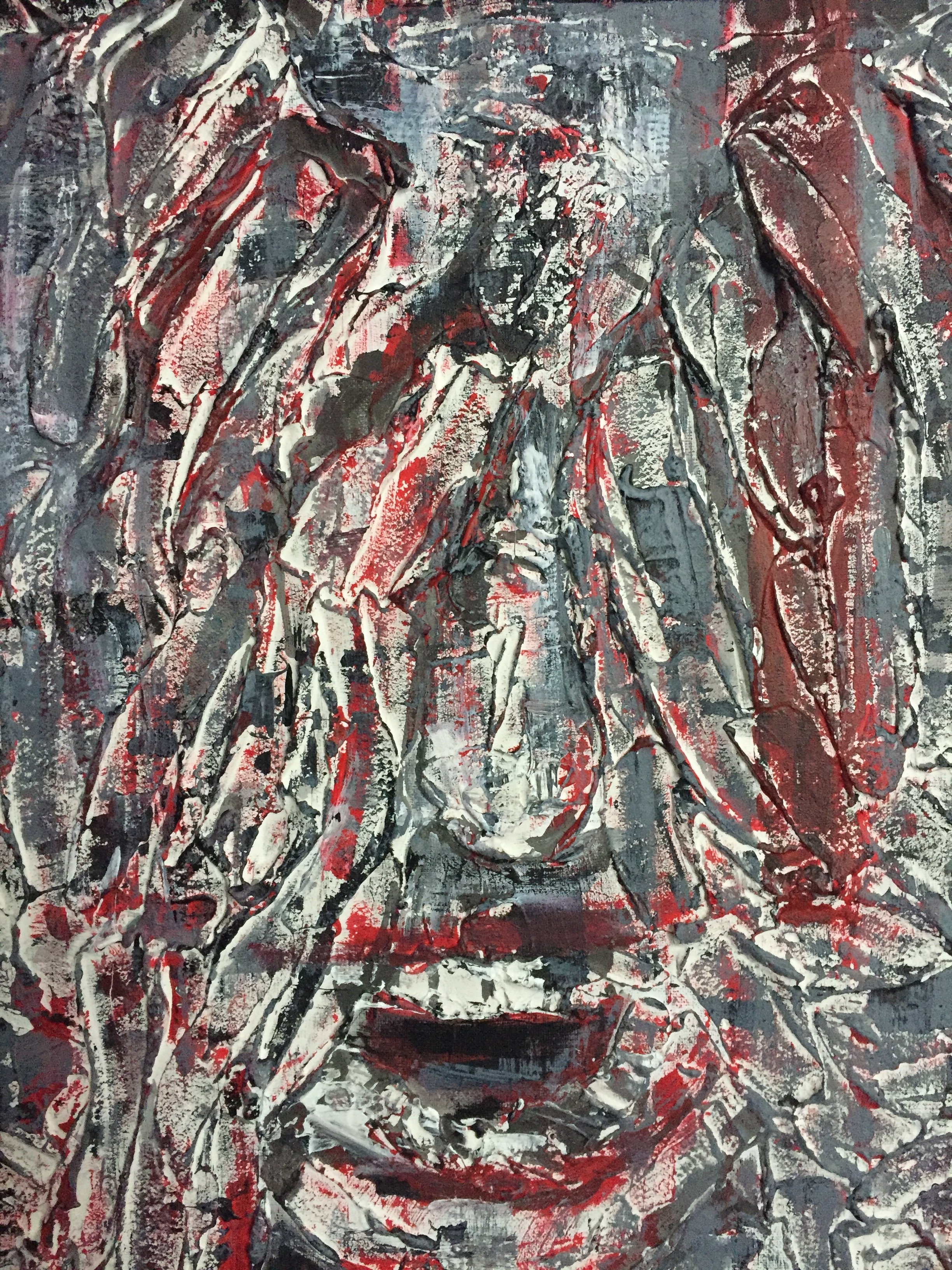 This is the first portrait I have painted during my shift to high textured plaster artwork.