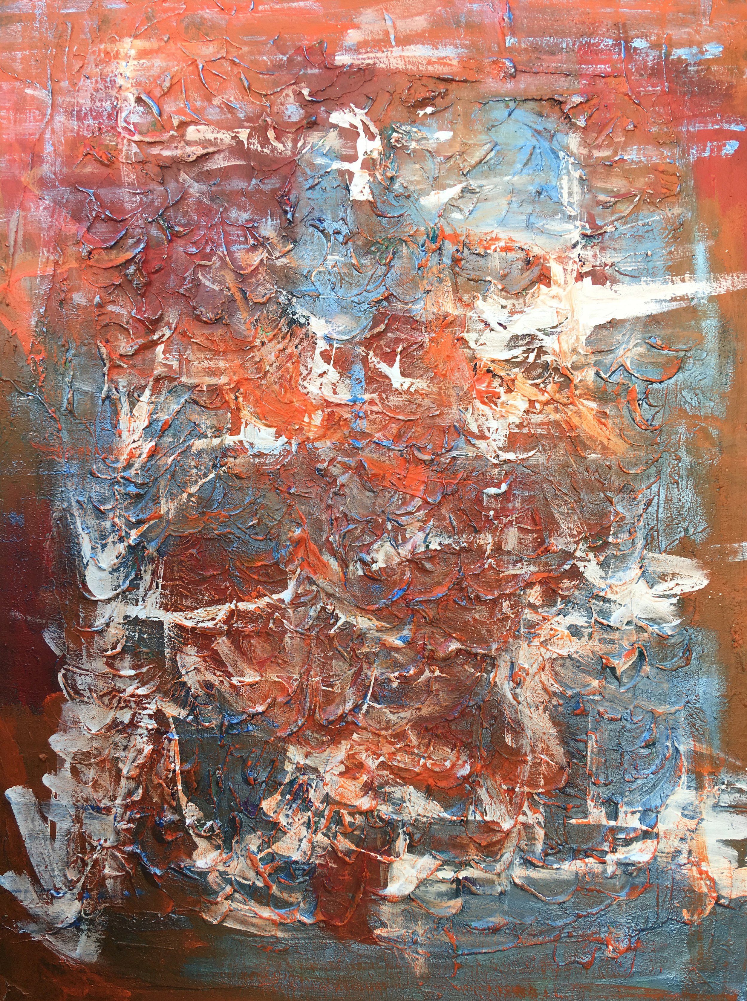 Winter's Furnace is a vibrant orange and blue abstract composition made for a friend.