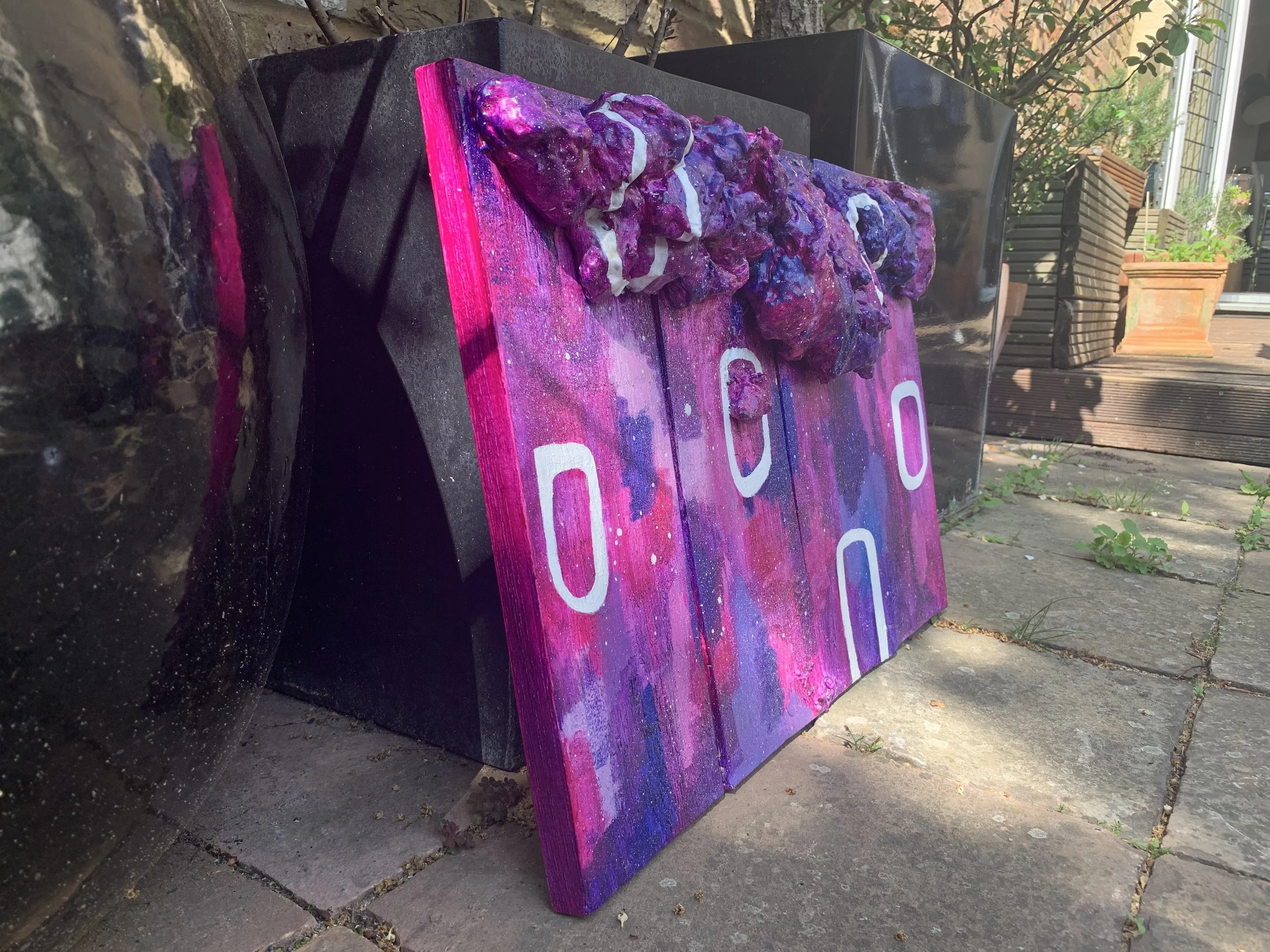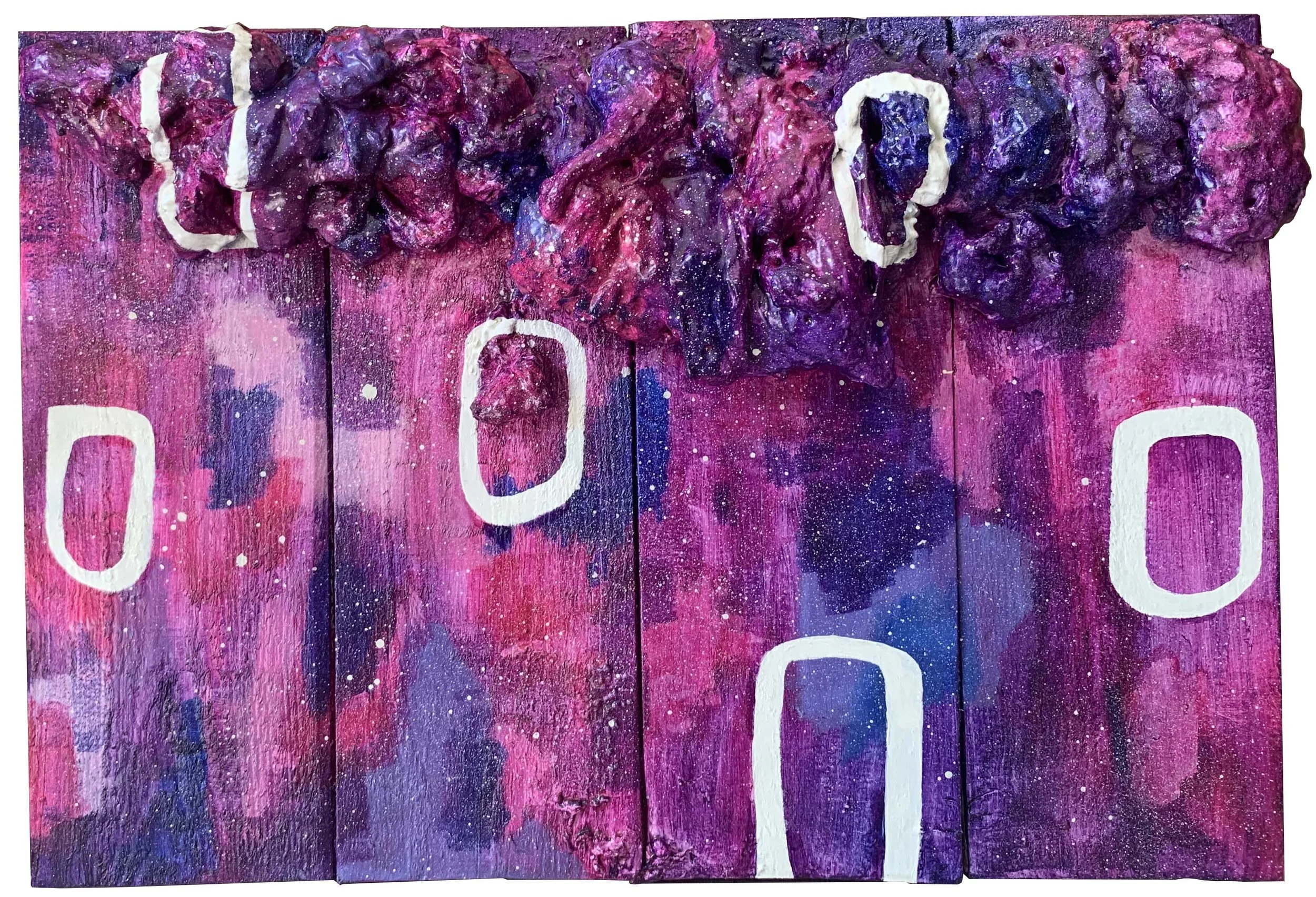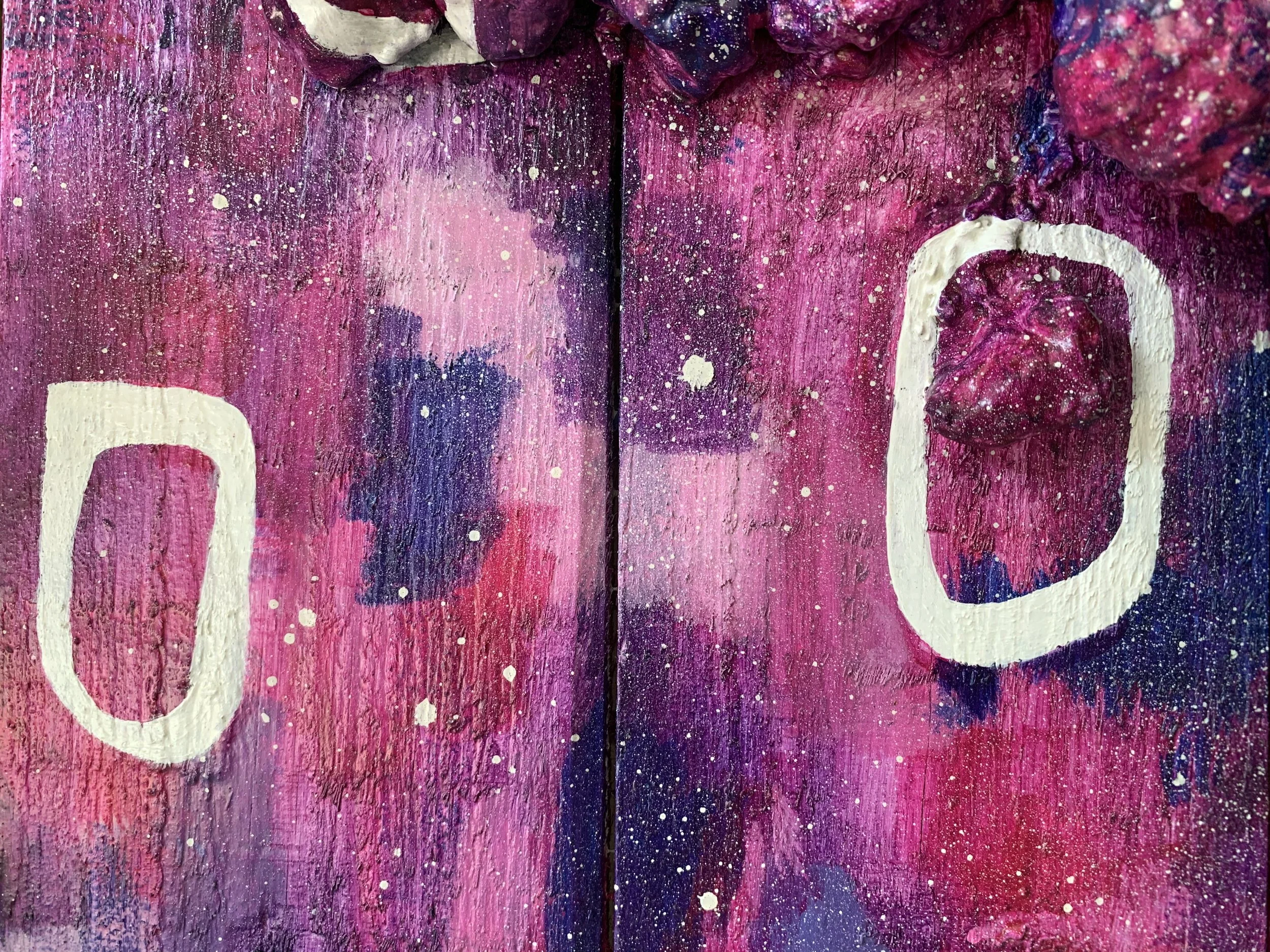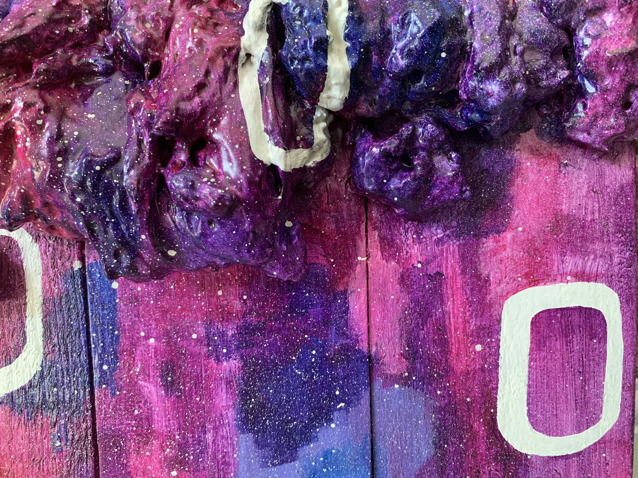 Nebula is a space inspired multimedia abstract artwork created using foam, acrylic paints and spray paint on wood.